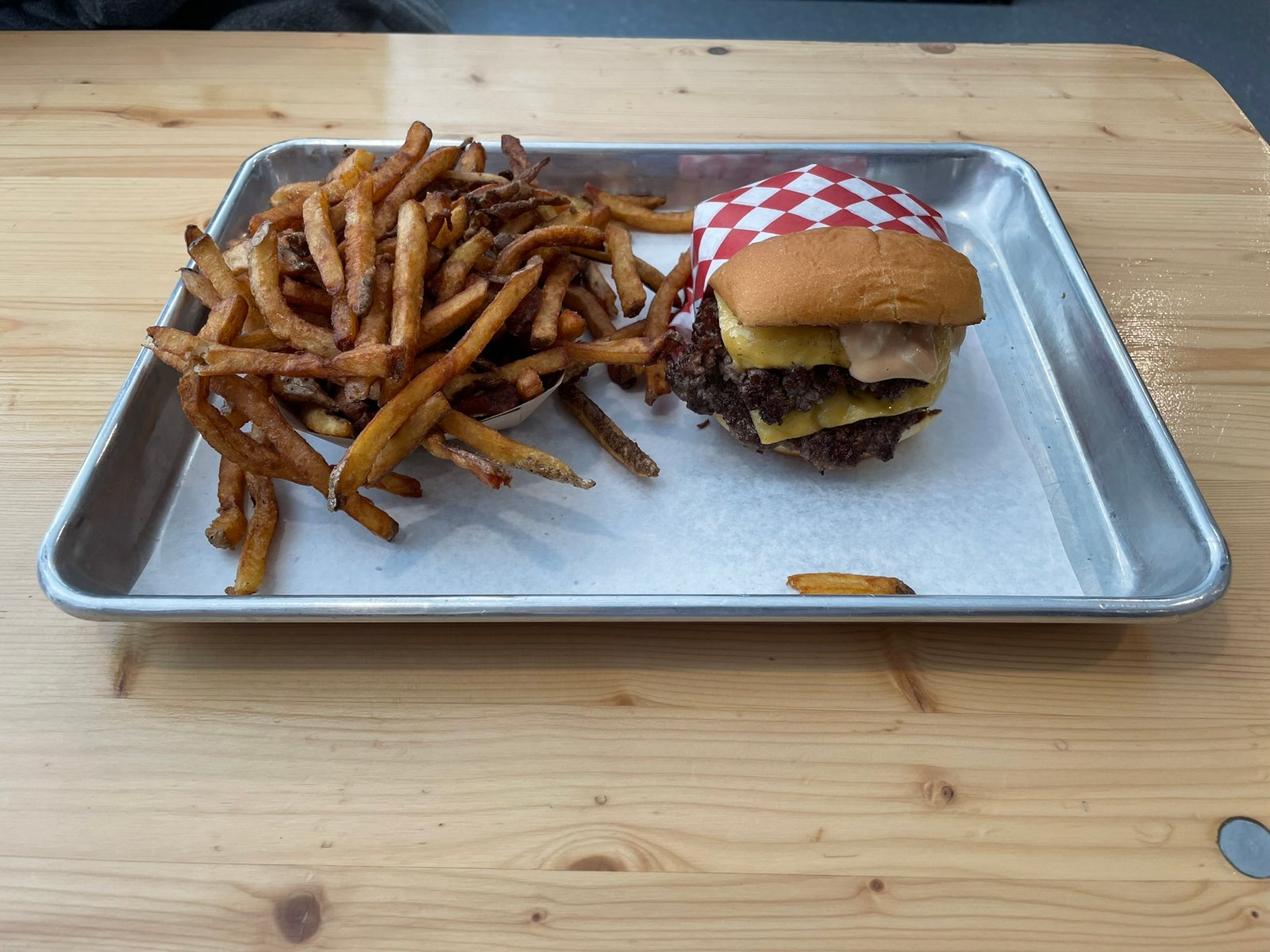 Admittedly, my expectations were modest upon arrival. This was my daughter’s choice for our afternoon birthday celebration, and I was unaware of the culinary gem that awaited. With swiftness and finesse, our double cheeseburgers materialized before us, each meticulously crafted to our specifications. For me, a symphony of flavors emerged with each bite of my adorned creation, featuring hot peppers, pickles, and onions, while my daughter’s aversion to tomatoes left hers delightfully unadorned.