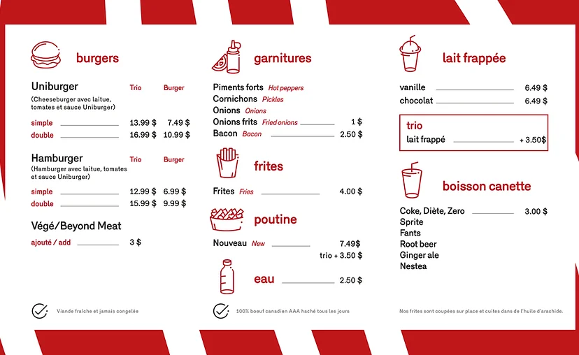 According to the visionary behind this burger franchise, Younes Bengeloune, the secret to Uniburger’s success lies in its simplicity—a notion underscored by the utilization of premium ingredients. The buns, crafted with a delicate touch of potato flour, harken to the spirit of the American-style burgers, imported directly from the land of the stars and stripes. Meanwhile, the beef patties, the cornerstone of any great burger, are painstakingly prepared in Montreal at Maison du Roti, adhering strictly to Uniburger’s exacting standards.